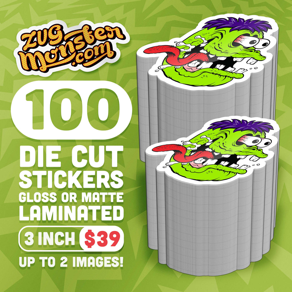 Promo codes not valid with this sticker special. PRODUCTION, for this deal can not be rushed as this deal is highly discounted, for quicker turn around, please order from our regular websites pricing or reach out to us to quote you for a rush service fee on regular priced stickers. EMAIL: orders@zugmonster.com